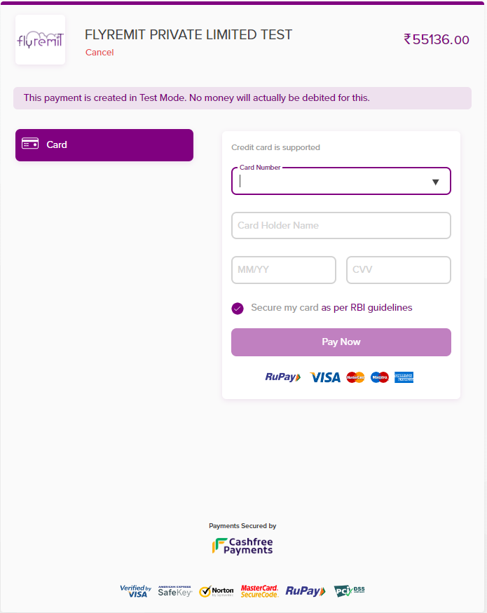 i) The Payment of Rs.{{InrAmount}} towards this Outward Remittance of is being made from your own Account / DC / CC.